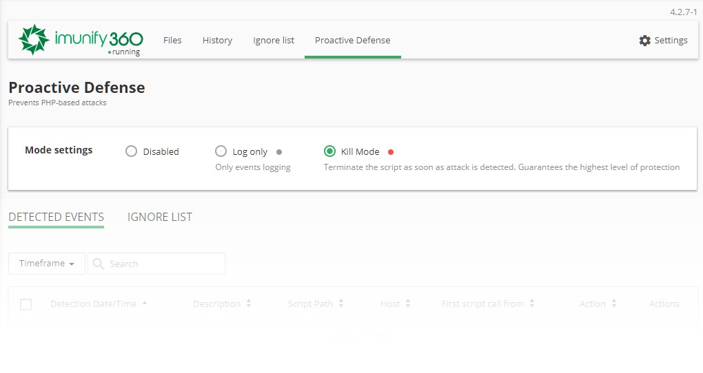 Although Imunify360 is pre-configured to do its job without any extra tuning, Imunify360 offers a cPanel interface to check scan history with ability to clean or deleted infected files.
