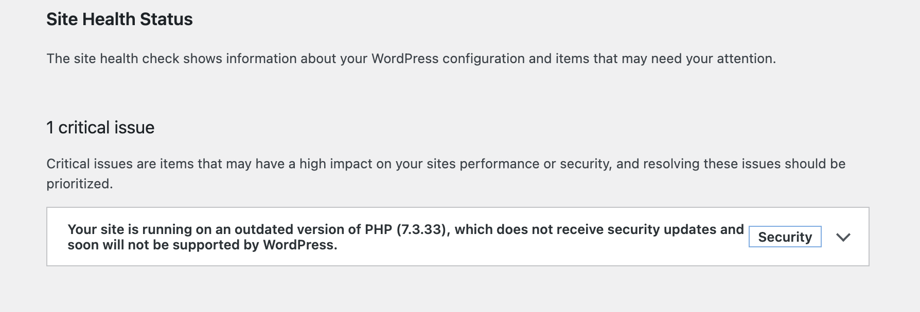 WordPress is notifying you that your website is using an older version of PHP. PHP is the programming language that powers WordPress, and outdated versions can cause security risks, compatibility issues, and slower performance.