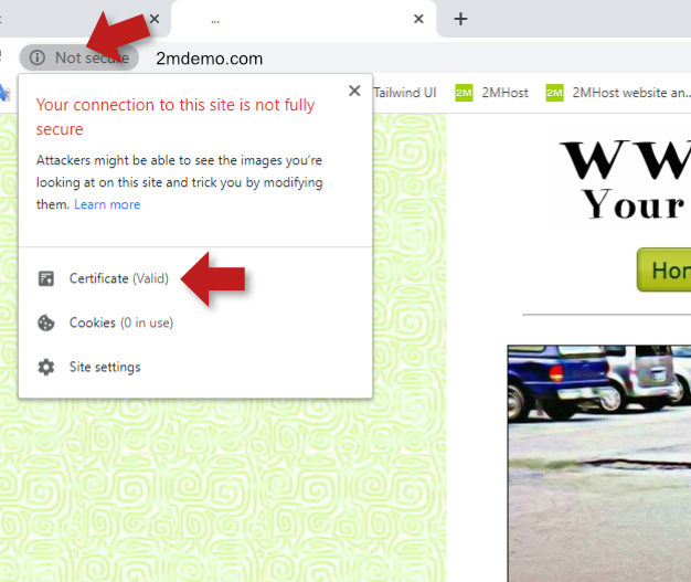 Load your website using https://yourdomain.com and click on the site information icon in the browser address bar