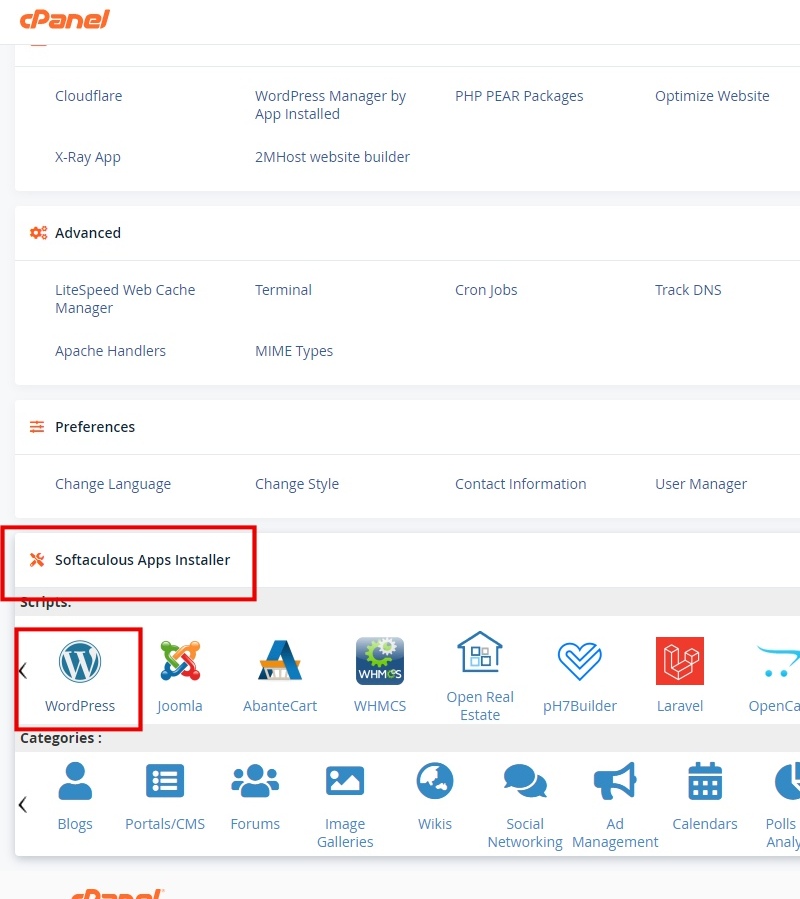 - Back to cPanel home page, scroll down to the Wordpress Icon under 'Softaculous Apps Installer'. Click on the 'All Installation' icon on the top menu and find your live Wordpress installation.